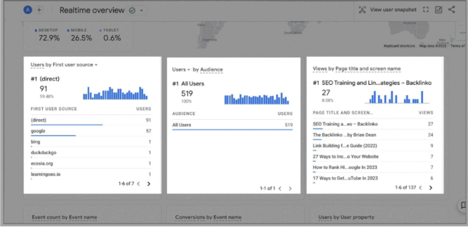 If you click on “Realtime Reports” on the left-hand menu, you’ll get more insightful data. You can review what device your users are visiting from, whether it be their phone, tablet, or desktop