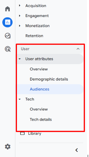 "Users by Audience" allows you to examine how your users belong to various categories. In GA4, you can create custom audiences, which enables you to break down and analyze your data in a more detailed manner.
